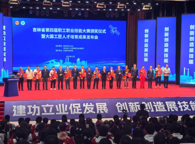 2025年11月16日,吉林省第四届职工职业技能大赛颁奖仪式暨大国工匠人才培育成果发布会在长春科技学院隆重举行。本届大赛由吉林省总工会、省人力资源和社会保障厅联合主办,以“建功立业促发展、创新创造展技能”为主题,设置无人机装调检修、5G技术创新、人参鉴别加工等40个赛项。经过历时6个月、初赛、复赛与决赛三轮激烈比拼,一批扎根一线、技艺精湛的优秀职工脱颖而出,最终40名选手分获各赛项冠军。